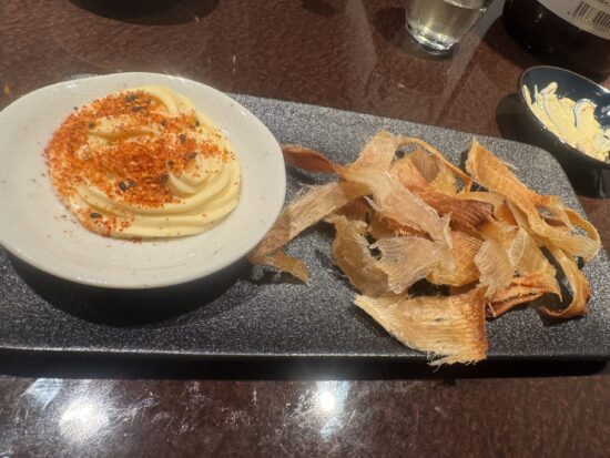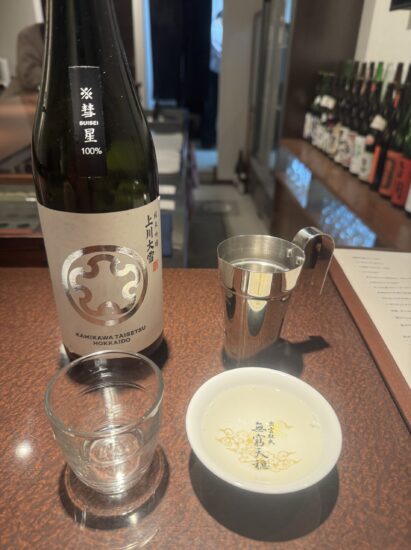 1杯目はプチプチした燗酒をお願いして、北海道の上川大雪酒造の純米吟醸を頂きました。