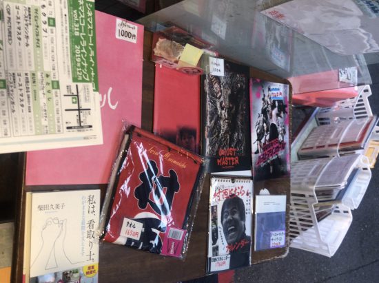 ビルの1階で、入口にポスターが沢山貼ってあるのですぐわかります。パンフやグッズが所狭しと並べられています。