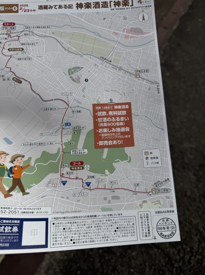 酒蔵周辺の史跡や施設を巡りつつ、ゴールの酒蔵では甘酒やお酒の試飲、直売など楽しめるとても心惹かれる内容です。