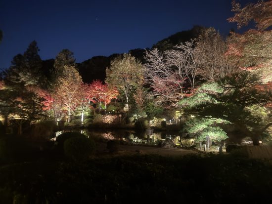 夜の時間帯にこのような伝統家屋・お庭に立ち寄るのがとても新鮮で、紅葉とともにとても印象に残りました。