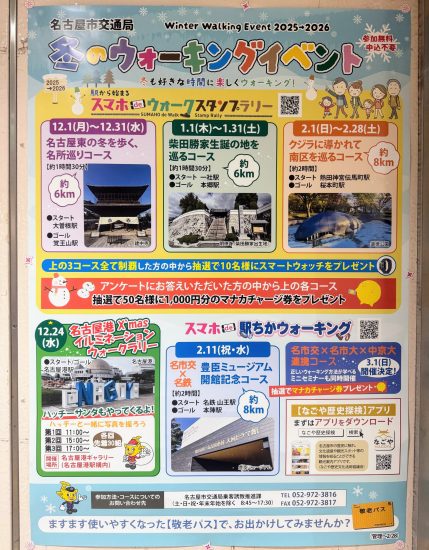 駅から始まる スマホdeウォークスタンプラリー 名古屋東の冬を歩く、名所巡りコースを歩きました