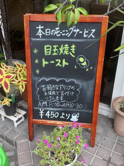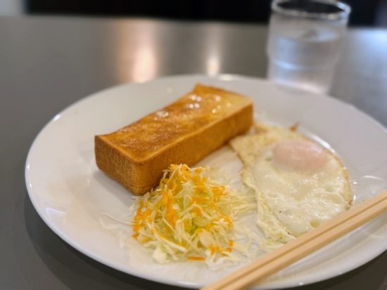 モーニングは好きな飲み物に日替わりでサービスが付きます。この日は目玉焼きとトーストでした。