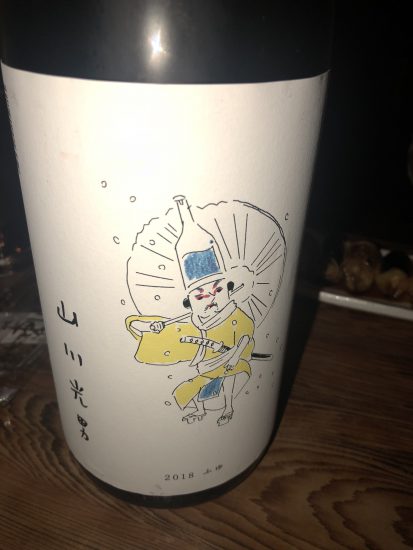 夜の懇親会にて。すごくすてきな日本酒を見つけました。山川光男という銘柄です。