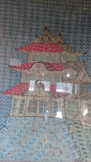 天守閣最上階には天井絵巻があります。完成を祝って、横山大観や著名な政治家の方から寄贈された絵画や書などがあるそうです。
