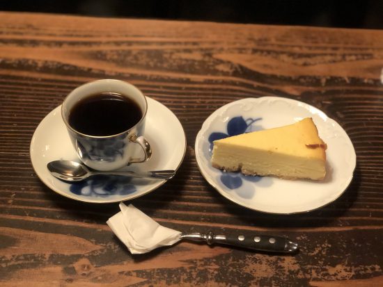 まずコーヒーとチーズケーキがきました。大倉陶園のすてきな器です(ソーサーを裏返しました)。