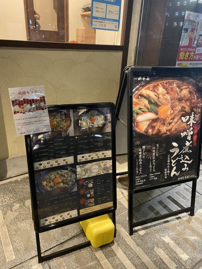 以前行っておいしかったのでいつも通りすがりにまた行こうと思ってた桜通大津山本屋にて、味噌煮込みうどん以外の色目のうどん(右上のです)があるのが目に留まり、