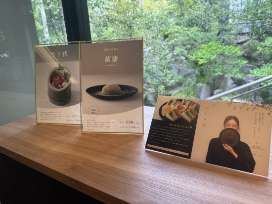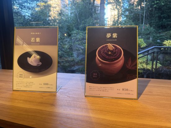 こちらは今回の限定メニュー、源氏物語絵巻にちなんだお菓子です。どちらもおいしそうです。閉館間近であんみつやサンドイッチは売り切れておりました。