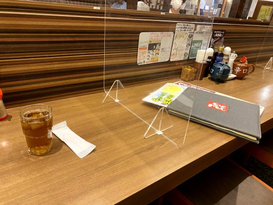 カウンター席はこのように仕切られています。ほかにテーブル席もあります。