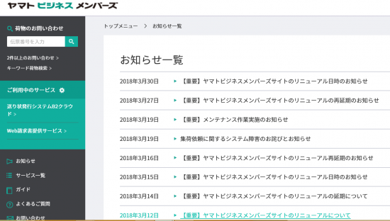 かたや、同時期にヤマト運輸のビジネスメンバーズのHPもリニューアルされたのですが、対照的でした。