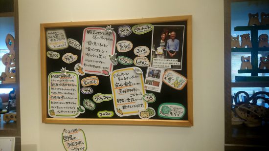 レストランの思いがこんな素敵なボードに貼ってありました。青いシャツが木村さんです。