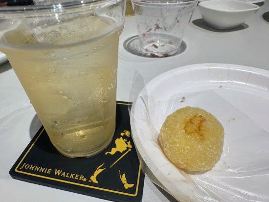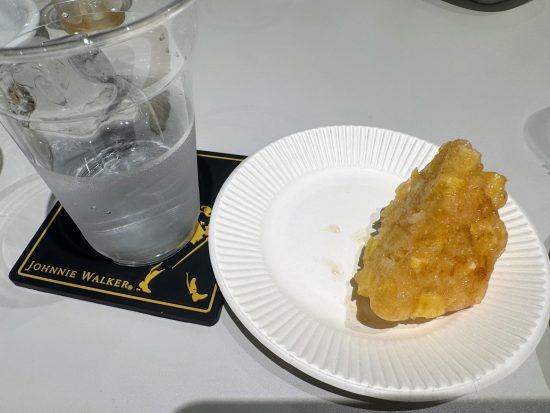 この日一番好きな組み合わせでした。あんこに味噌やお塩が使われていてスモーキーフレーバーととっても相性がいいとのこと。今回は水割りでしたが、ロックだともっとおいしいとのことです。こちらにも塩を付けました。絶品でした。