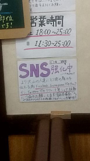 - FacebookやTwitterで毎日美味しそうなとり焼きの写真を発信→お店のことがよくわかる