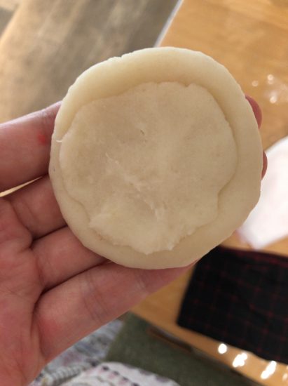 1個分を取り、少し残して真ん中を薄くして丸く広げます。