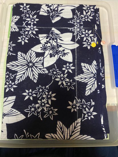 袖の生地をどちら側に使うか、柄のバランスを見て決めました。ほぼ浴衣に見えてきて嬉しいです。